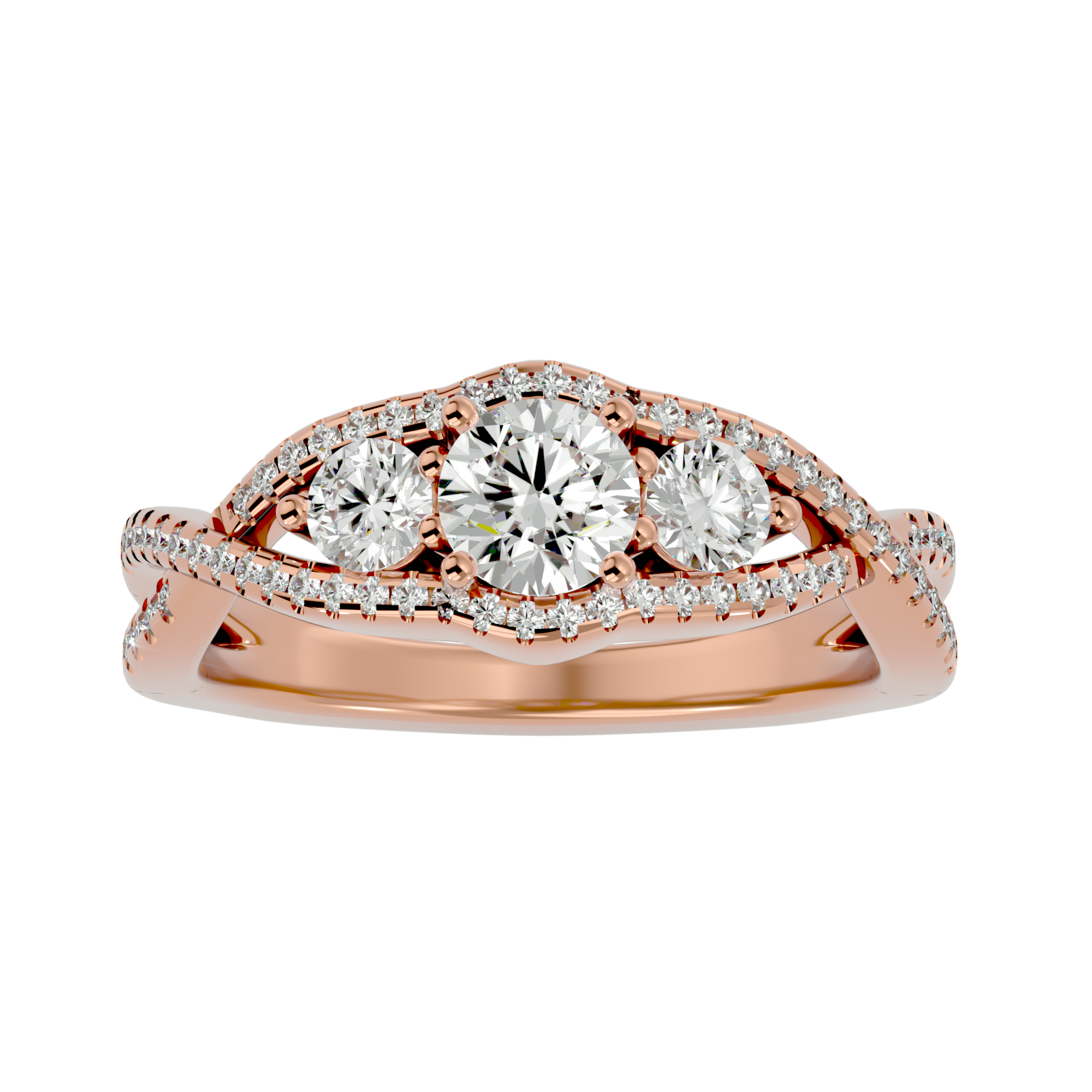 Triple Lab-Grown Diamond Ring with Twisted Pavé Band