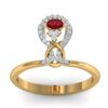 An elegant twist knot ring featuring a striking ruby centerpiece surrounded by shimmering lab-grown diamonds. This unique gold band intertwines sophistication with timeless charm, making it a perfect statement piece.
