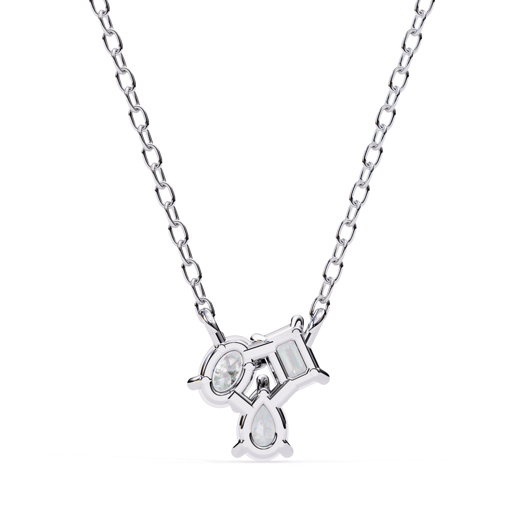 A dazzling trio of emerald, round, and pear-cut lab-grown diamonds come together in this unique pendant, set in 18K gold. A statement piece that exudes modern luxury.