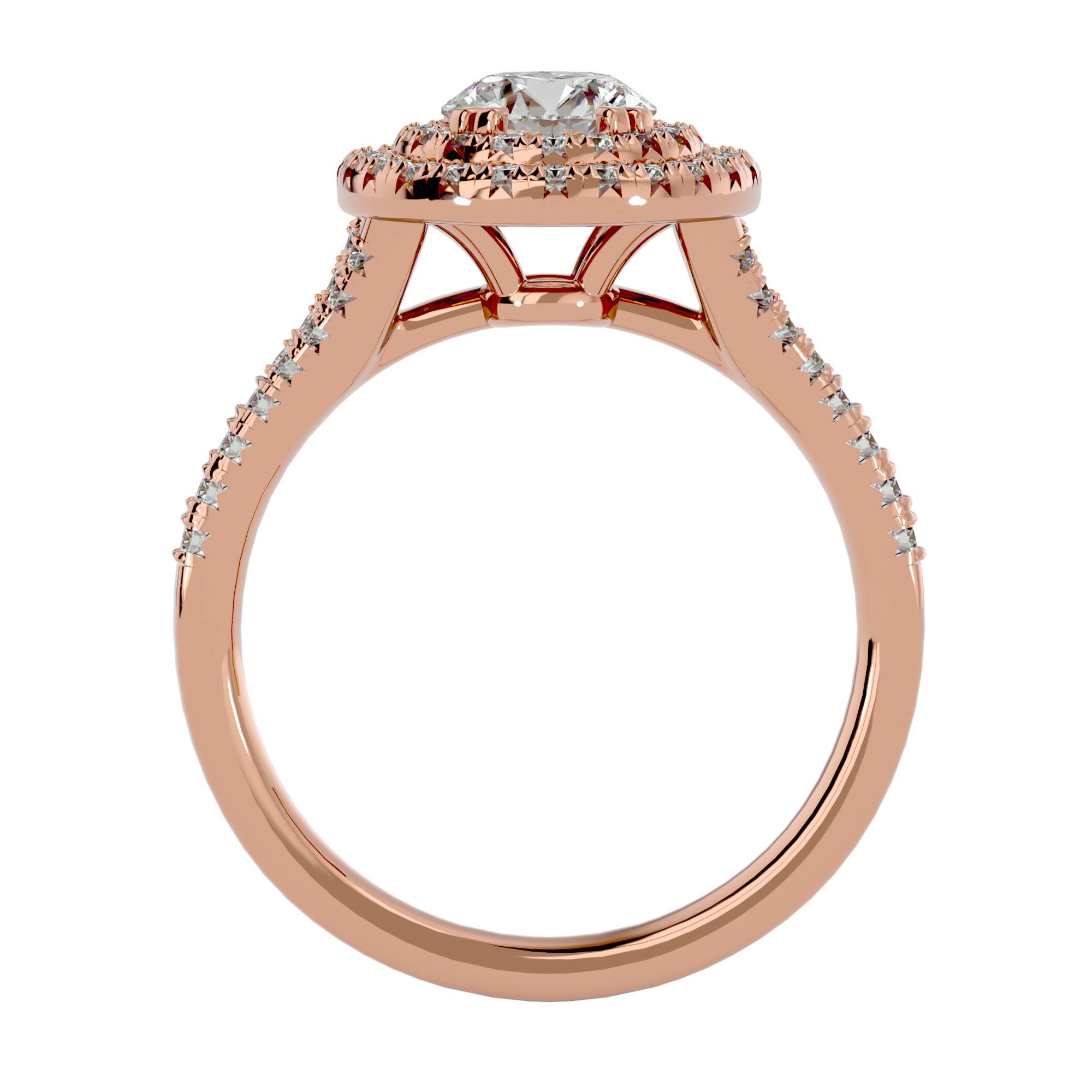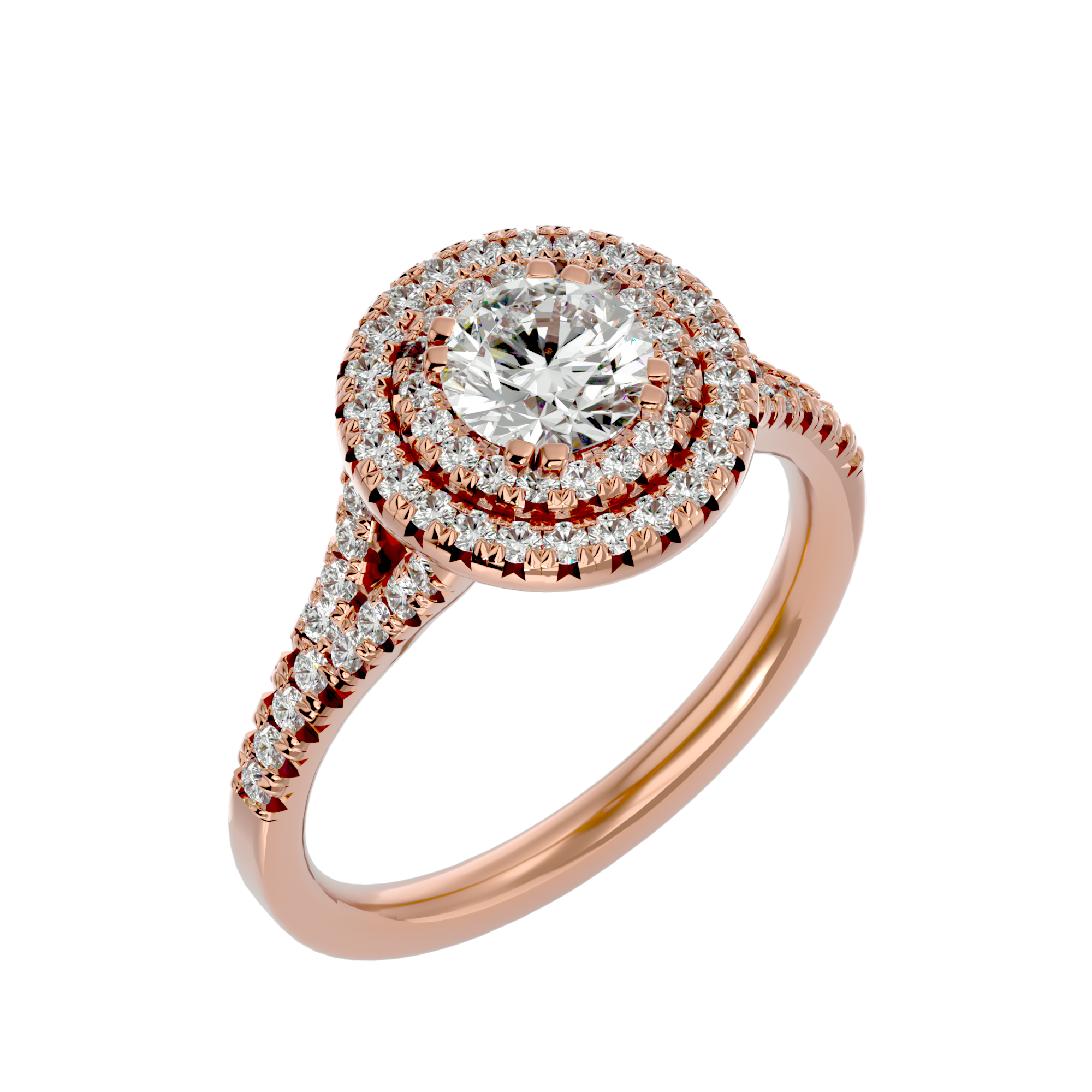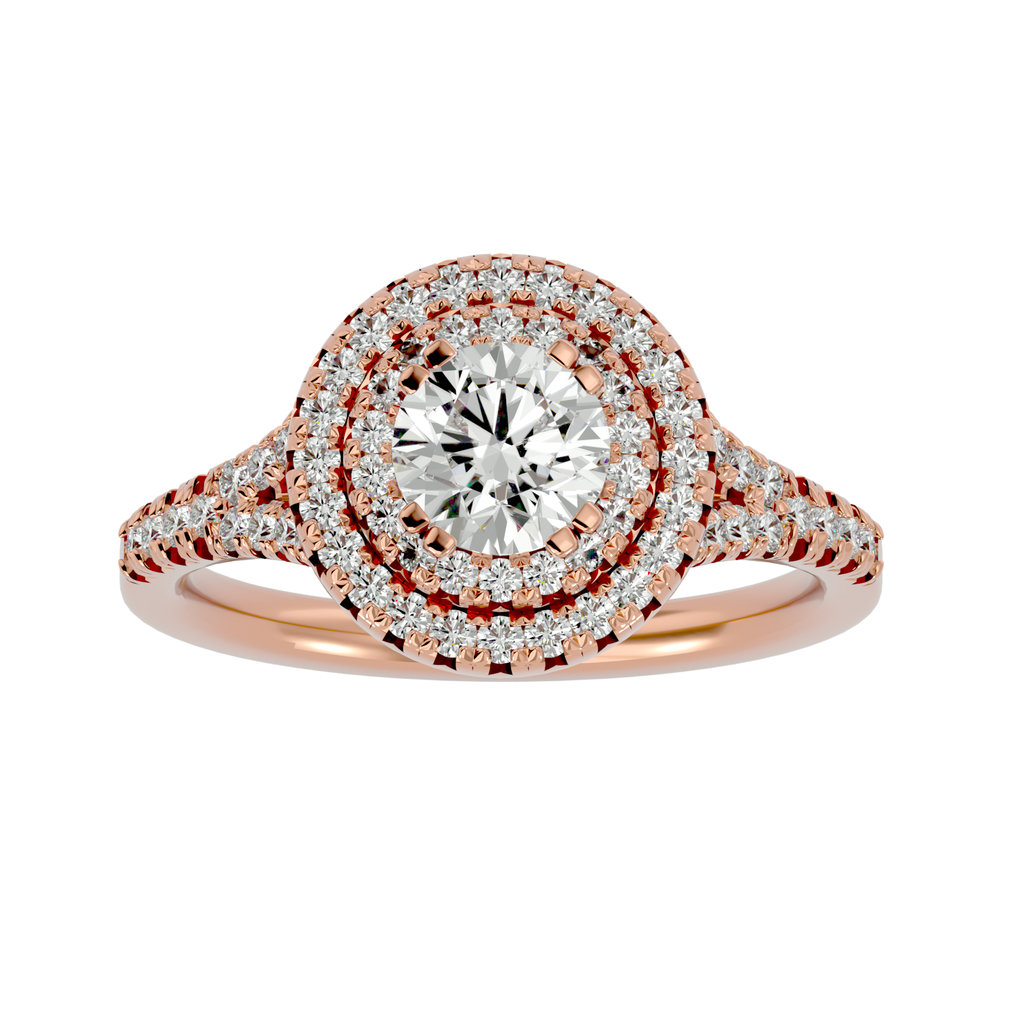 A breathtaking statement of luxury, this double halo ring features a dazzling round-cut lab-grown diamond encircled by two rows of sparkling accent stones. Crafted in radiant 18K gold, this ring offers unmatched brilliance and ethical elegance, making it the perfect choice for a timeless engagement or special gift.