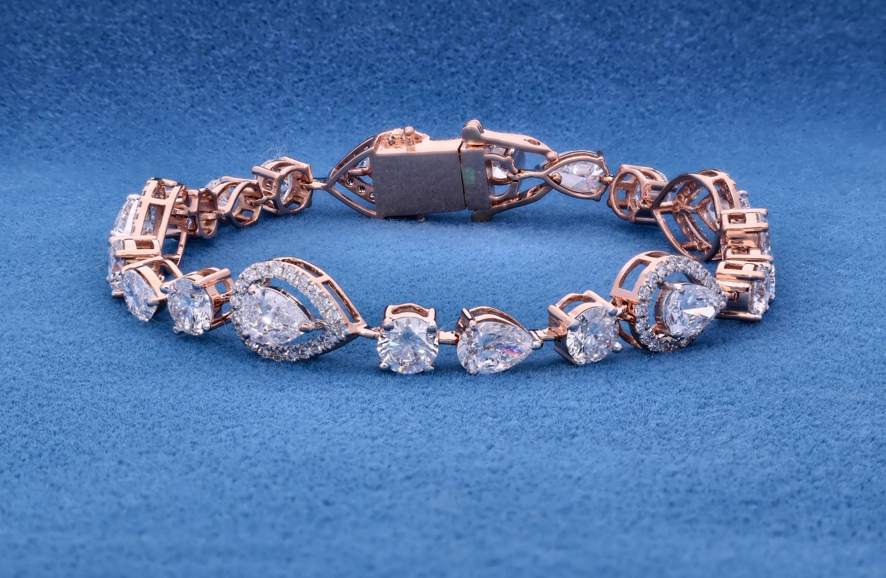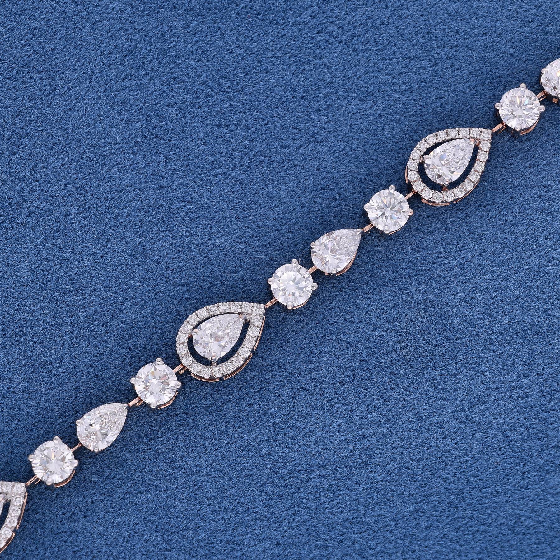A dazzling bracelet featuring a stunning mix of pear and round-cut lab-grown diamonds, elegantly set in 18K gold. Designed for timeless sophistication, this piece radiates brilliance and luxury.